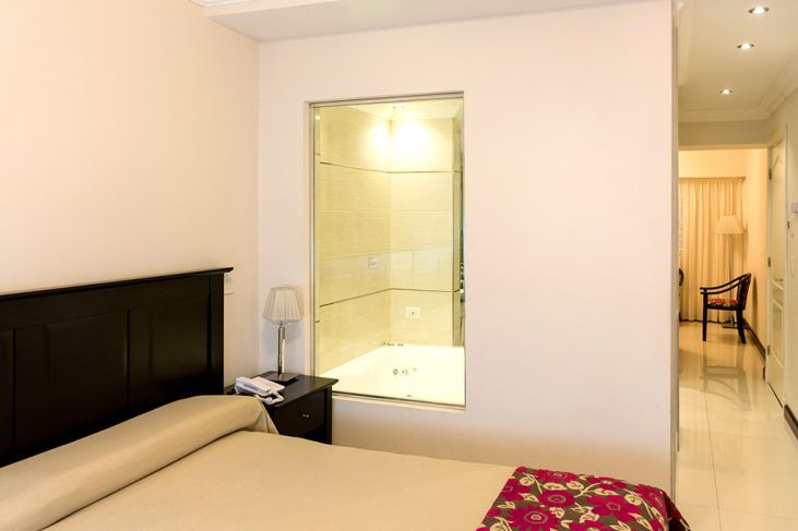 Ideal para familia. Moderna y amplia habitacion, cuenta con baño con ducha e hidromasaje, sommier, TV con cable, frigobar, caja fuerte, aire acondicionado y calefaccion central por radiador.